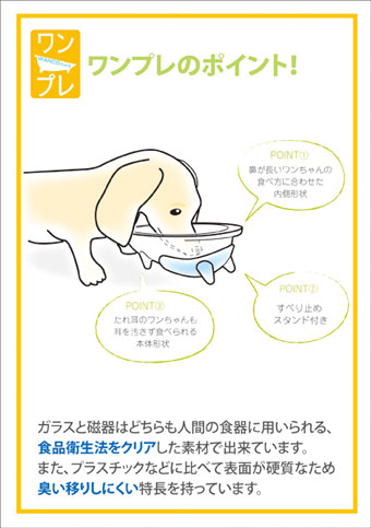 アニマル工学に基づいた常識を覆すフードボウル誕生! また"たれ耳"の犬は食事の際に耳が汚れてしまう、といった問題もリサーチの結果わかりました。 アニマル工学の考え方から、これらの問題を解決し、より自然な動きでごはんを食べてもらえるよう工夫した新しい犬用食器「ワンプレ」の登場です!!食器やキッチン用品に使われる耐熱ガラス製なので、電子レンジOK! 雑菌の繁殖やニオイ移りしないため、お手入れ簡単で清潔にお使いいただけます。 日本が世界に誇る「有田焼」の確かな品質で作っています。 人間の食器と同じ素材を使用しているので、大切なワンちゃんにも安心してお使いいただけます。 電子レンジで簡単調理もOK! 食事中に容器が滑らないようにシリコーンのスタンドをつけました。 シリコーンは医療用品や哺乳瓶のニップル(吸い口)にも使われている安心素材です。 本体と一緒に電子レンジに入れられます。 お洒落なフードボウルがない!という声を参考に、どんなインテリアにも合うよう4種類のカラーバリエーションと、ガラスと有田焼の2タイプを用意しました。 メーカー ハリオ HARIO ペットのフードボール 小型犬 |