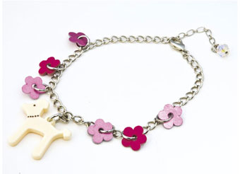 ミミパンソンのマスコット、プードルと、小花を散りばめたように配したフラワーチャームが愛らしい、猫・小型犬用のネックレスです。