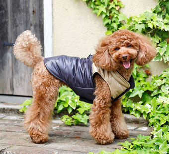 冬のお散歩にサッと羽織れるダウンが出来上がりました。シンプルかつ暖かい犬の服