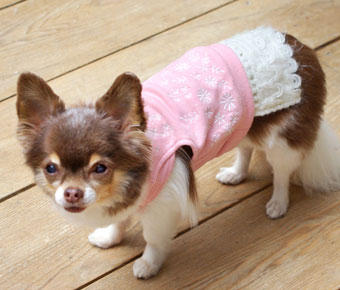 犬の服 刺繍フリルワンピース ピンク 犬と生活