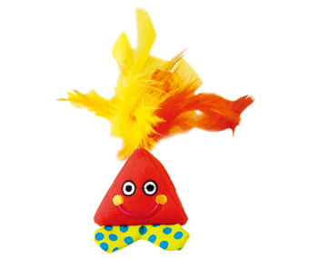 大きくカラフルな羽をはたいて三角形のボディを転がそう!足元がカサカサ鳴って興味を惹き付け、ネコちゃんの遊び相手になります。