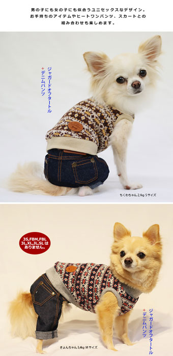 冬の定番ジャガードプリントをタートルネックにした犬の服。ユニセックスデザインだからどんなワンちゃんにも似合います
