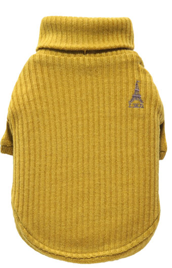 ぜひ触ってみてください。ふっくらと柔らかい風合いが魅力のアクリルニット。軽く手触りも良く、伸縮性があるので体にフィットして動きやすく、着心地も快適です。お馴染みのエッフェル塔の刺繍ワンポイントも洒落たカラーと相まってフレンチ感がアップしました。マスタードイエローとロイヤルブルー、どちらもこの冬注目のトレンドカラーです。ブルーはスッキリと上品に、イエローはシックで暖かみのあるコーデに、どちらも表情豊かな魅力あるカラーです。「タートルニットだとリードはどこから通せばいいの?」ご安心を!タートル部分の首後ろには、リードを通せる穴が付いています。オシャレの邪魔にはならない一工夫です♪