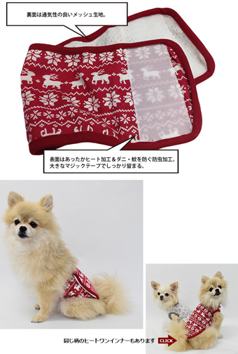 冬にピッタリのノルディック柄。じんわり温まるのでお腹の冷えやすいわんちゃんに特にオススメします。
